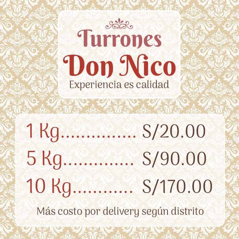 Más de 70 años de experiencia en preparación de pasteles clásicos. La receta secreta del turrón de Don Nico, quien a sus 97 años continúa produciendo, ha pasado a sus hijos y nietos, quienes ahora lo apoyan en este amoroso y dulce emprendimiento.